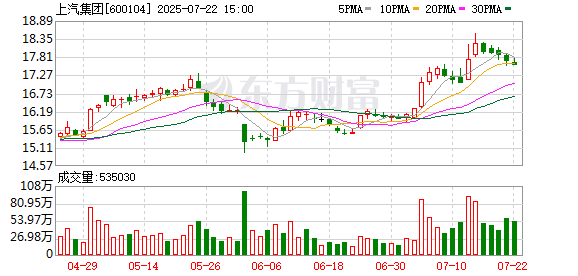 证券时报·数据宝统计显示,上汽集团今日收盘价为17.56元,下跌0.68%,日换手率为0.46%,成交额为9.45亿元,全天主力资金净流出4329.37万元,近5日该股累计下跌3.57%,近5日资金合计净流出3.90亿元。