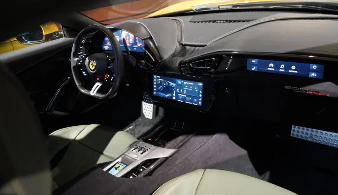 12Cilindri spider大概也是法拉利最智能化的一款车型,他的车内共有3块屏幕,中控、仪表和副驾屏。